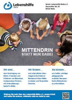 Startseite Herzlich willkommen bei der Lebenshilfe Melle Wir freuen uns, dass Sie sich für die Lebenshilfe Melle interessieren. Auf den folgenden Seiten bekommen Sie alle Informationen zu unseren Angeboten! Verein Lebenshilfe Melle e.V. Gesmolder Str. 50 49324 Melle Wir unterstützen die Aktion der Bundesvereinigung Lebenshilfe