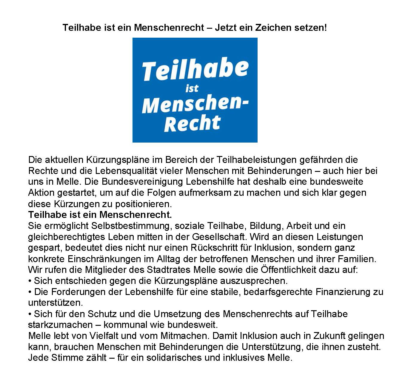 Bei Interesse erste Kontaktaufnahme über ,,lebenshilfe.melle@web.de“